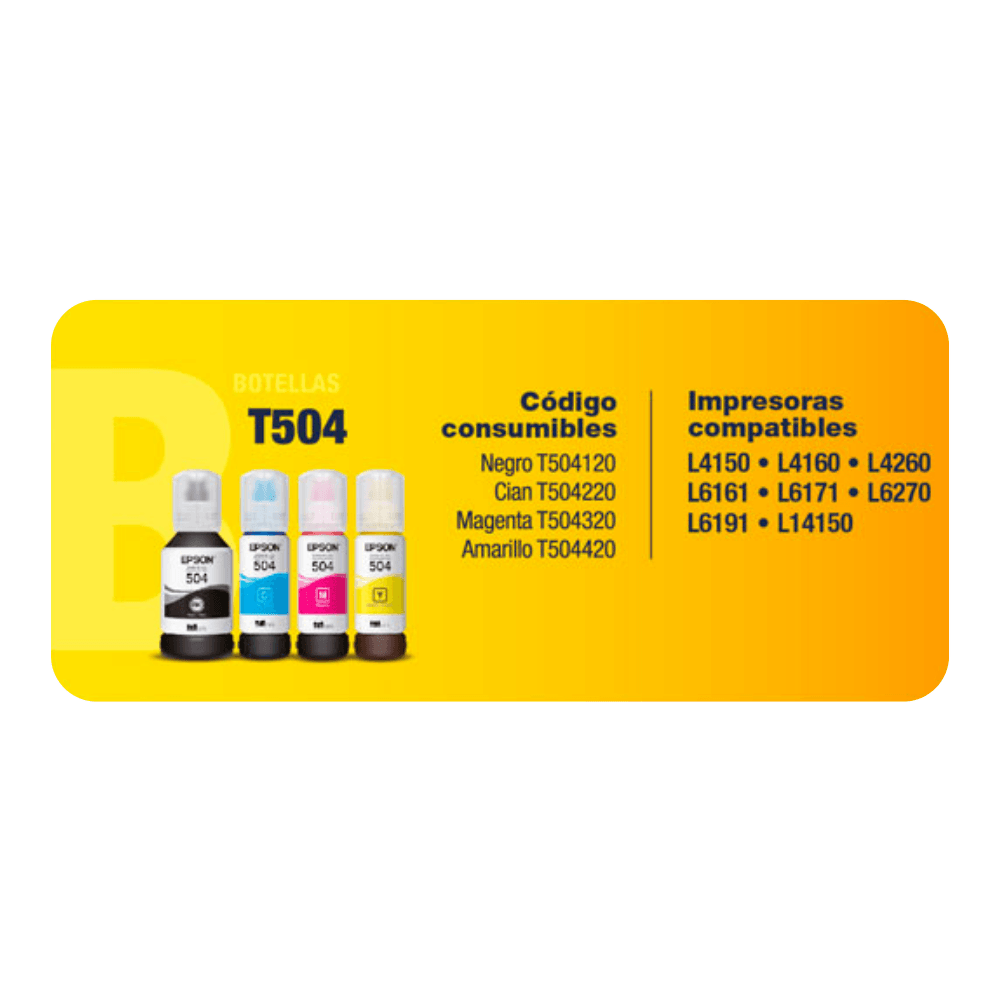 - Compatible con impresoras Epson L4150, L4160, L4260, L6161, L6171, L6191 y L14150.