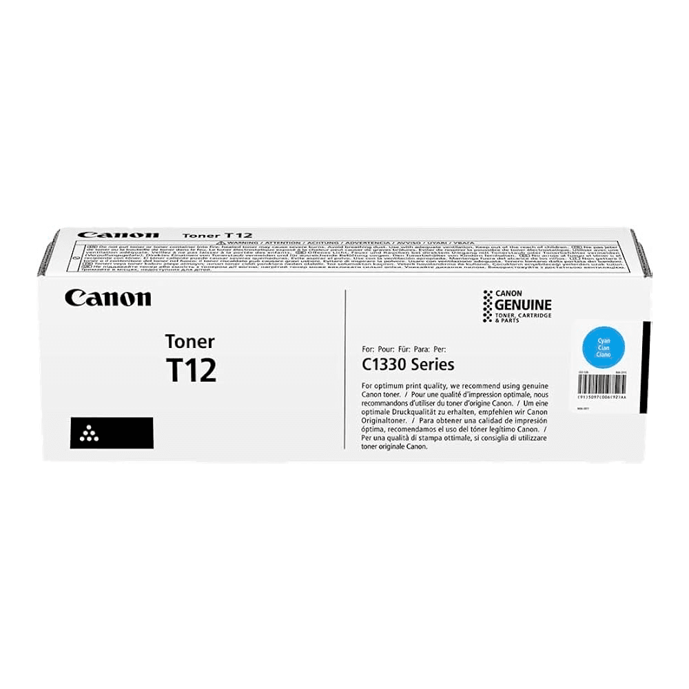 Cartucho de tóner Canon T12 original de color Cian con un rendimiento de 5.300 páginas.